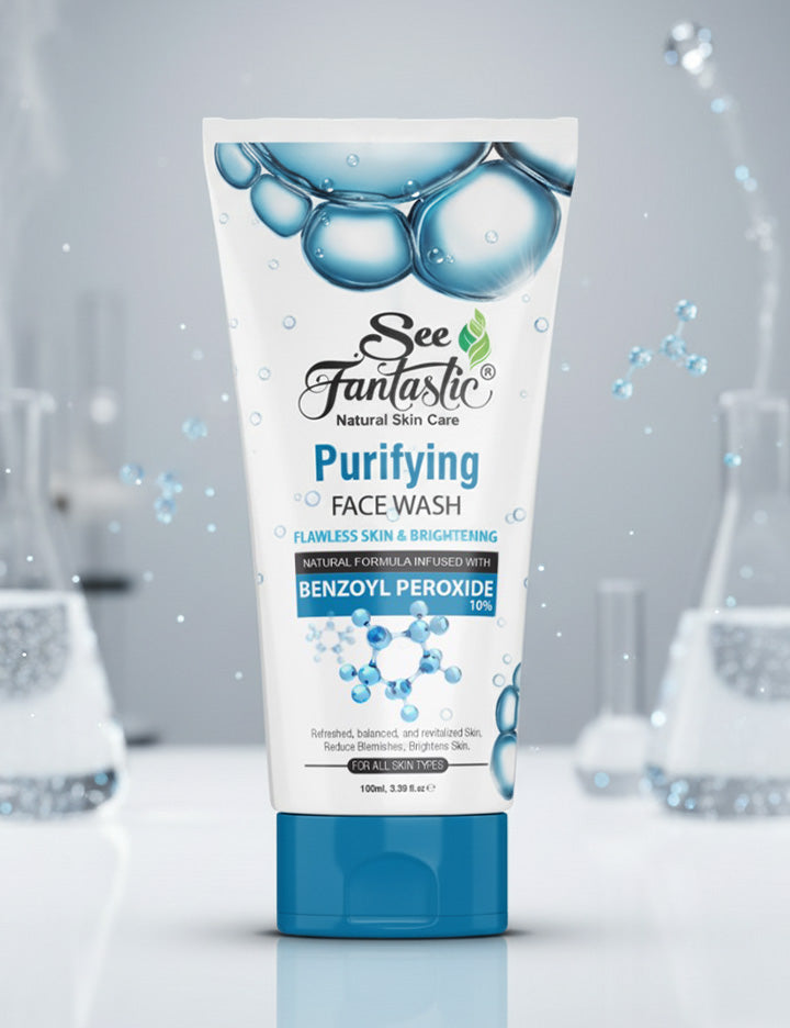 SeeFantastic Benzoyl Peroxide Face Wash is a potent anti-acne treatment in a compact 100ml bottle. Formulated to combat pimples, blackheads, and breakouts, this deep cleanser harnesses the power of 4% benzoyl peroxide to unclog pores and reduce blemishes.